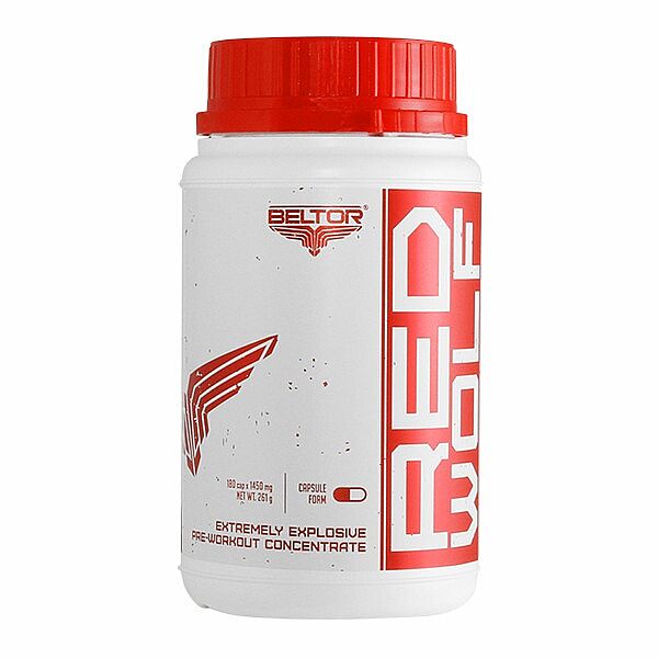 Trec Beltor RED WOLF je skutečně výbušná kombinace účinných látek pro použití při nejnáročnějších výzvách, jako jsou extrémní tréninky nebo soutěže. RED WOLF obsahuje speciální komplex beta-alaninu, taurinu, L-tyrosinu a L-histidinu, který je obohacen o velkou dávku čistého bezvodého kofeinu. Obsahuje také snadno vstřebatelný citrulin malát a L-norvalin, doporučená denní dávka je 5 kapslí.