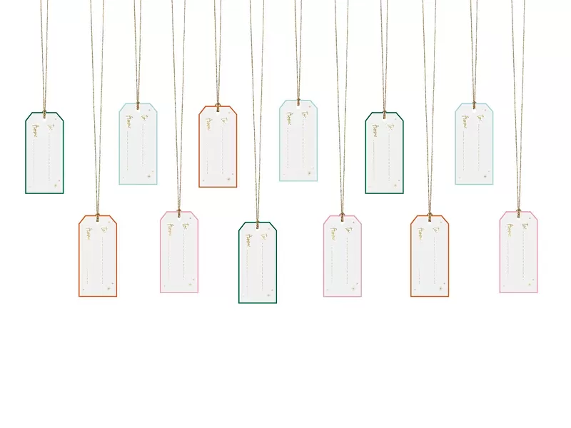 Papírové štítky na dárky. 4 designy po třech kusech.