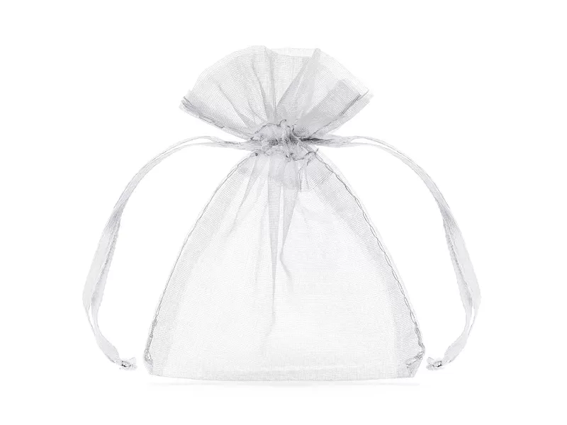 Stahovací organzové pytlíčky v bílé barvě, ideální na drobné dárky pro hosty na party nebo svatbu. Lze je také použít jako dekoraci, kdy je naplníte například kamínky nebo umělými diamanty a rozmístíte po stolech.