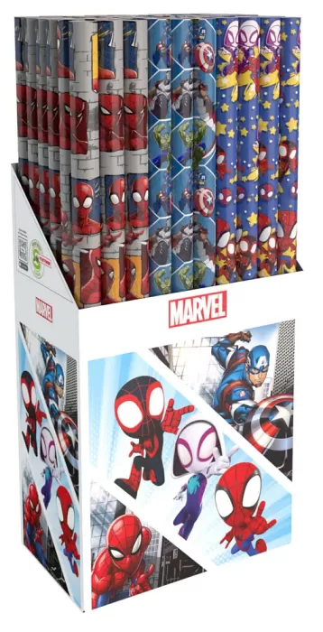 Dodejte svým dárkům superhrdinský styl s balicím papírem Marvel. Na výběr máte hned tři atraktivní designy: klasický šedý papír s ikonickým Spider-Manem, modrý papír s týmem Avengers v čele s Thorem a Captainem Americou, a hravou variantu Spidey and His Amazing Friends, kde se objevuje Spidey, Ghost-Spider i Miles Morales. Skvěle lze balení dárku vyladit s rozetkami a stuhami. Velký formát nabízí dostatek materiálu pro větší balíčky i více menších dárků. Díky kvalitnímu a pevnému papíru se vám bude snadno balit, barvy jsou jasné a motivy dokonale vyniknou. Každý dárek se tak stane skutečným zážitkem ještě předtím, než se rozbalí. Ať už chystáte narozeniny, párty nebo překvapení pro fanouška Marvelu, tento balicí papír zaručí, že vaše dárky budou vypadat naprosto epicky. Rozměr: 70 x 200 cm