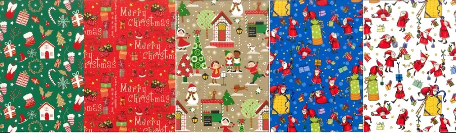 Kvalitní balící papír na dárky s motivem Vánoc, 5 motivů.