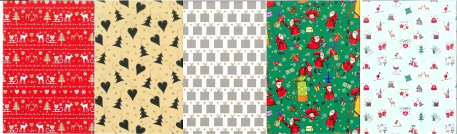 Kvalitní balící papír na dárky s motivem Vánoc, 5 motivů.