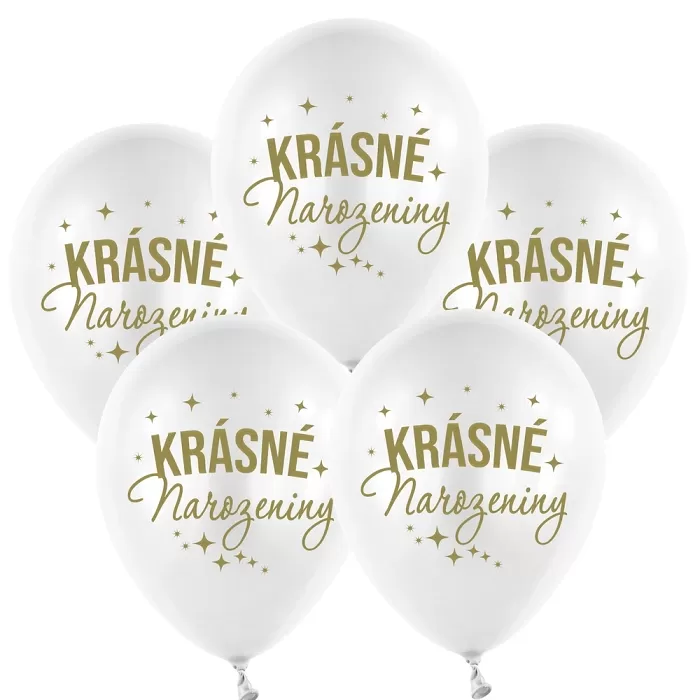 Latexové balonky bílé - Krásné narozeniny 5 ks