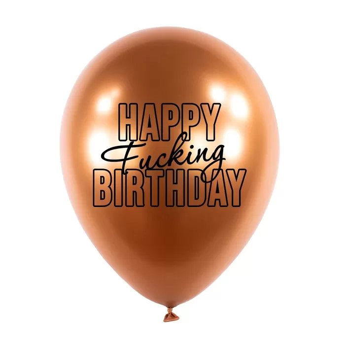 Moderní, stylové a vtipné latexové balónky s potiskem Happy Fucking Birthday se budou hodit na oslavu, ať už puberťák nebo dospělých. Pobavte se i ostatní nad vtipným nápisem.