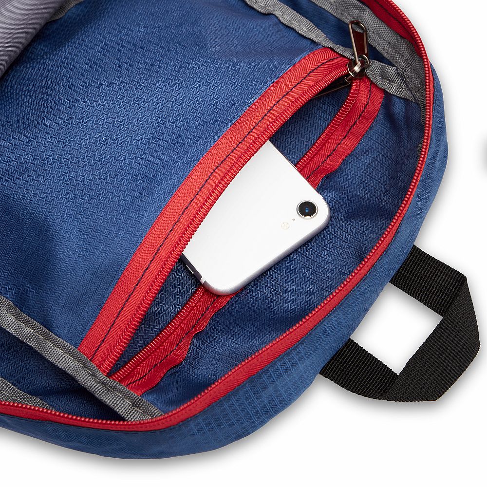 Uvnitř batohu je kapsa na zip, která zároveň slouží jako integrovaný obal.