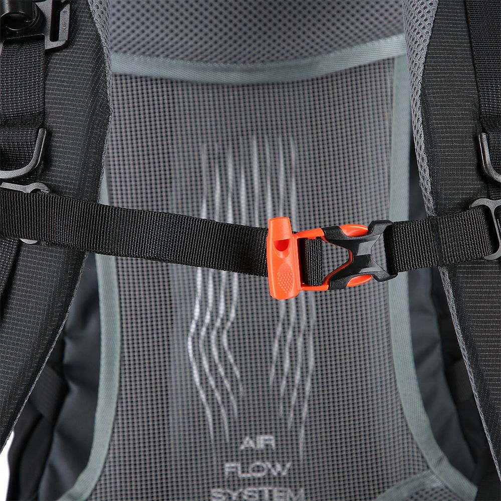 Přezka hrudního řemínku funguje jako nouzová píšťalka, která je nezbytnou součástí výbavy pro případ, že byste v nouzi potřebovali přivolat pomoc. Batoh Ghoster je také vybaven reflexními prvky na přední straně, které zvyšují viditelnost uživatele při osvícení.