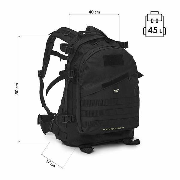 NC2904 Vanguard je vojenský batoh o objemu 45 litrů určený pro uživatele, kteří oceňují funkčnost, lehkost a taktický vzhled. Je ideální na jednodenní výlety, survival tripy a také jako městský batoh nebo EDC (Everyday Carry) - batoh na každodenní nošení nezbytných věcí, které chcete mít stále u sebe. Kompaktní rozměry v kombinaci s promyšleným designem z něj činí vynikající volbu pro každodenní použití i na výlety do terénu.