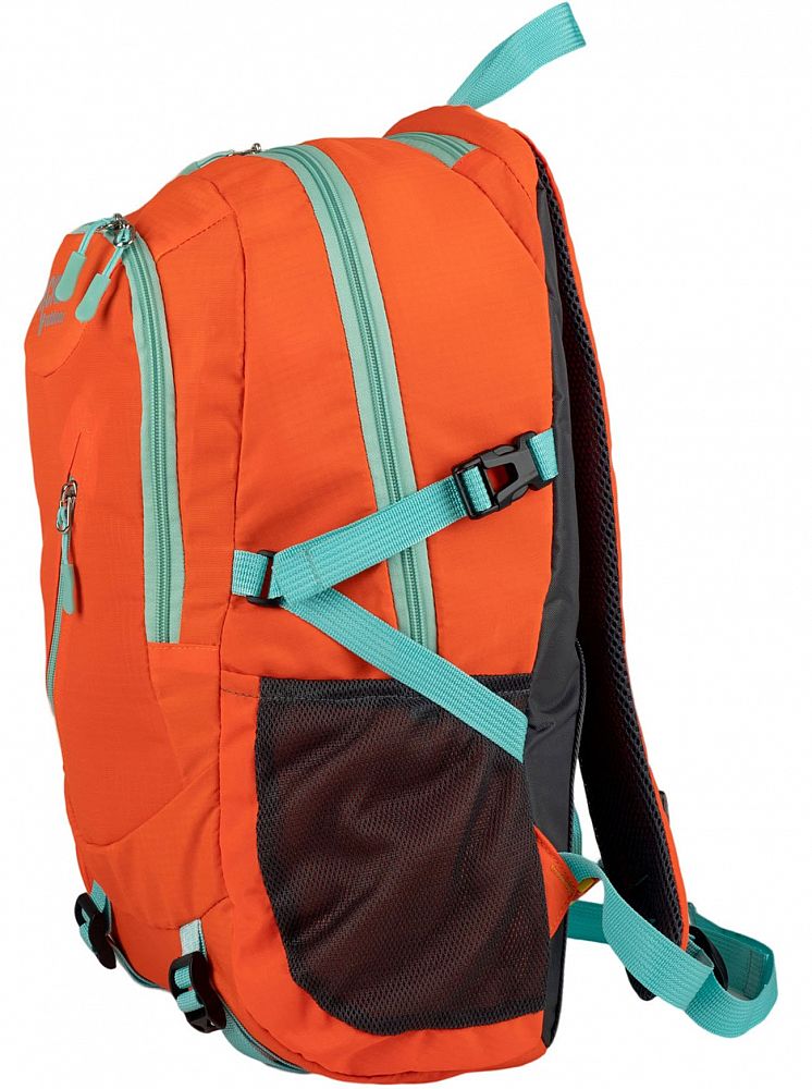 - batoh má 2 hlavní komory s vrchním vstupem, 2 síťované kapsy po stranách batohu, 1 přední kapsa na zip, 1 vrchní kapsa na zip, přední otevřená kapsa a ucho na snadné nošení na horní straně batohu. V hlavní komoře je ještě všitá velká kapsa například na notebook nebo jen pro přehlednější rozmístění přenášených věcí