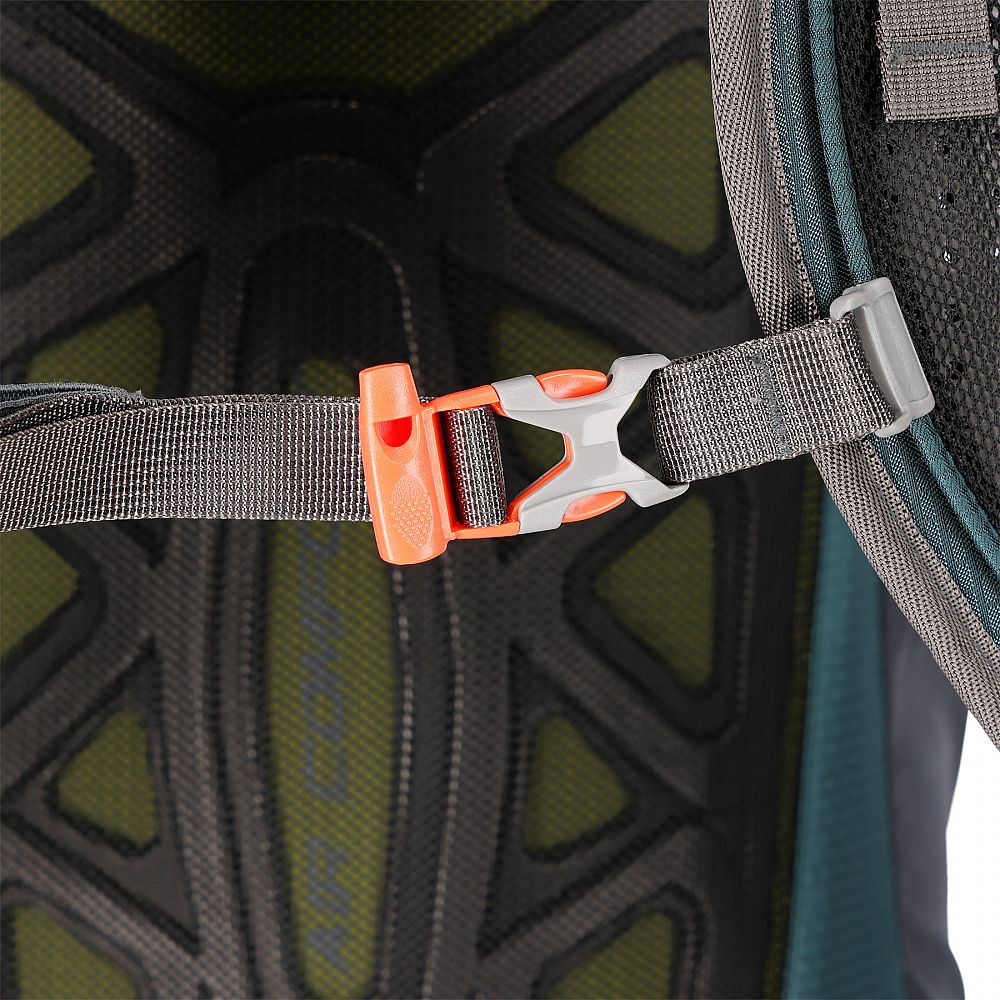 Na přezce hrudního popruhu je integrovaná záchranná píšťalka pro zvýšení bezpečnosti v případě nouze. Bederní pás nejen rovnoměrně rozkládá hmotnost, ale také stabilizuje batoh a navíc nabízí kapsy na drobnosti, jako je svačina, klíče nebo telefon.