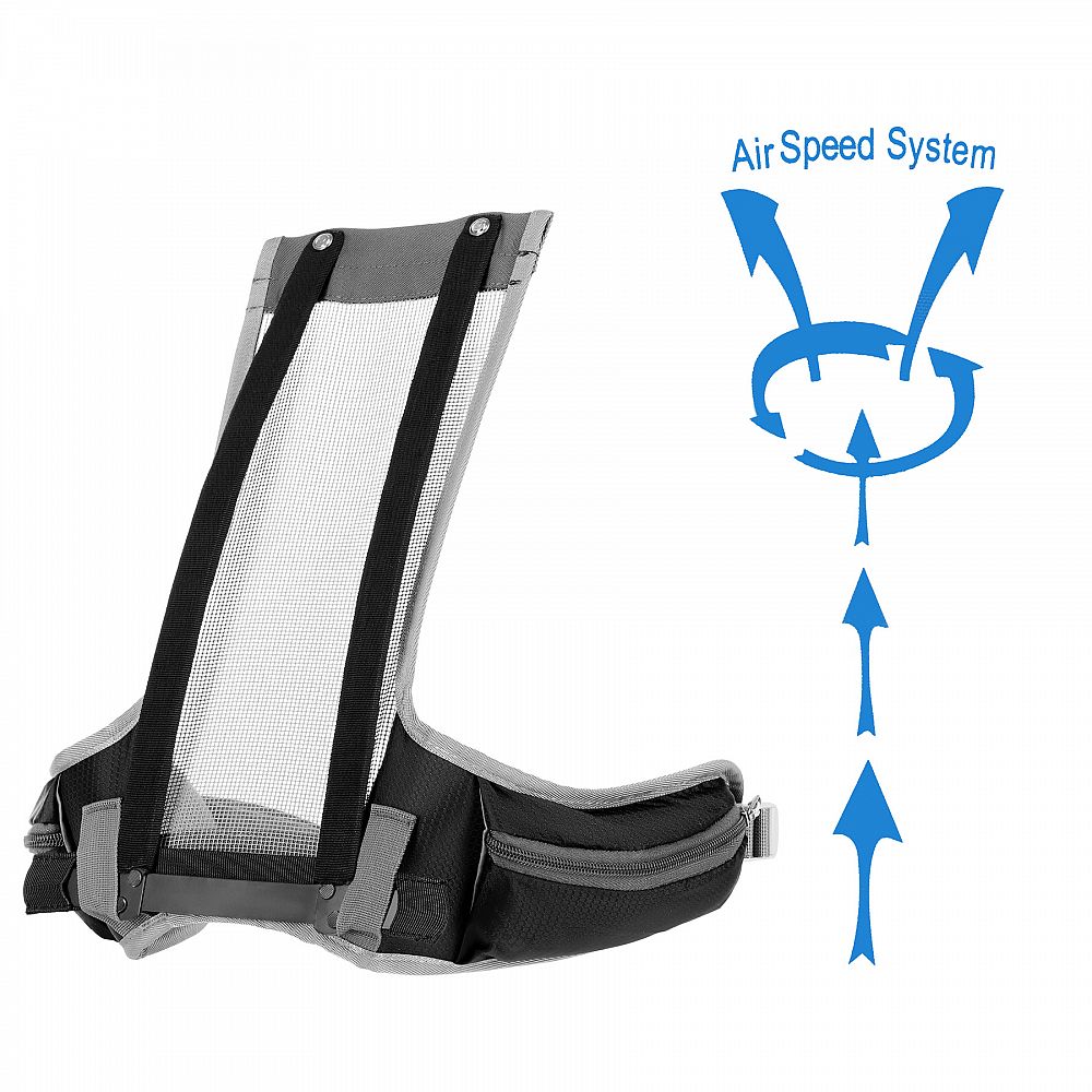 Batoh je vybaven řadou kapes a přihrádek pro efektivní správu prostoru. Využívá pokročilý systém větrání „Air Speed System“, který účinně izoluje hlavní komoru od zad a zajišťuje tak nepřetržité proudění vzduchu a větší pohodlí, zejména v horkých dnech. Batoh je navíc vybaven zádovým panelem s odnímatelným rámem, který výrazně rozkládá tlak na páteř. Snadné vyjmutí rámu je velmi praktické při praní.
