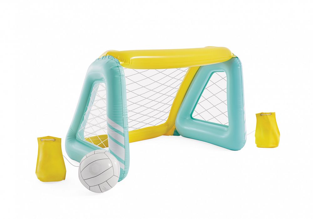 Nafukovací branka do bazénu. Velké využití pro míčové sporty pro děti. Je možné použití ve vodě i na suchu. Barevný motiv dodáván dle aktuálních skladových zásob.
