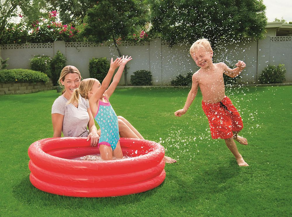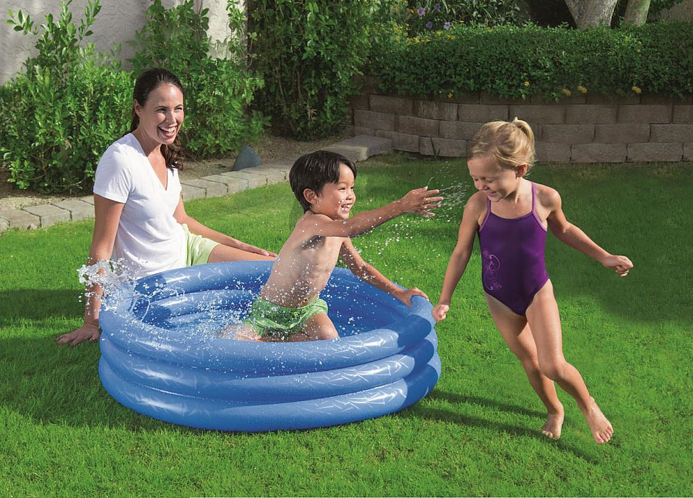 Nafukovací bazén tříkomorový o rozměru 102 x 25 cm, pro děti nad 3 roky, kapacita vody (75%) 110 l.