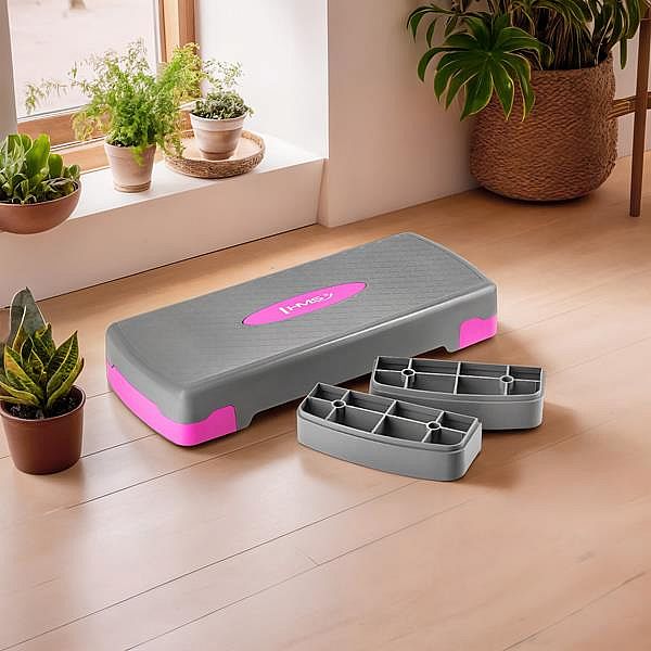 Popis: Step na aerobik HMS AS003 šedý/růžový