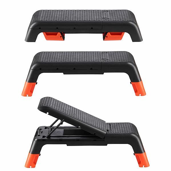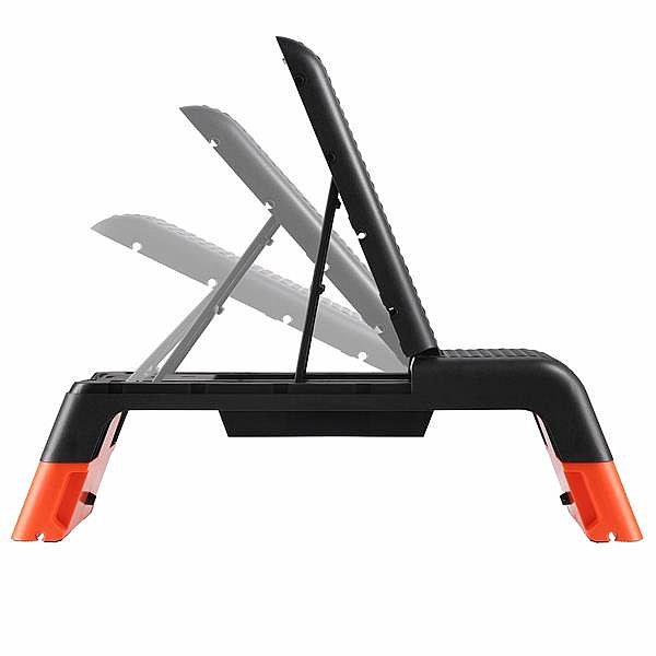 Během pár sekund můžete schůdek proměnit v plnohodnotnou posilovací lavici! Možnost nastavení opěradla do tří různých úhlů umožňuje provádět širokou škálu silových cviků, např. s činkami nebo odporovými gumami. Toto řešení kombinuje kondiční se silovým tréninkem a umožňuje vám plně využít potenciál vašeho těla.