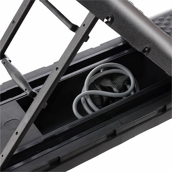 Můstek má vestavěný prostor pro uložení drobného příslušenství, jako jsou gumy, pásy nebo švihadla, takže budete mít vždy po ruce veškeré potřebné vybavení. Sada navíc obsahuje i expandéry, které umožňují silový trénink bez nutnosti sahat po dalších závažích.