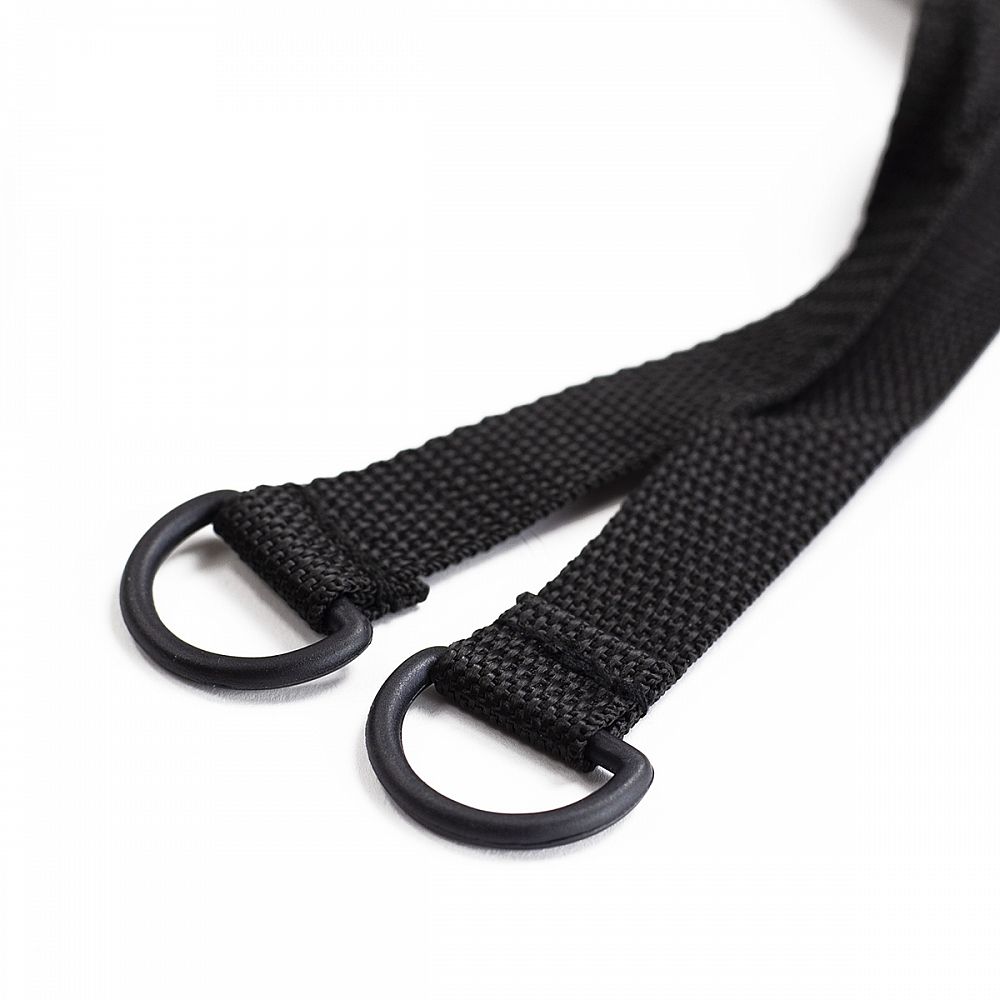 Příčky je možné plynule posouvat a po nastavení vhodných rozestupů je možné příčky zafixovat pomocí dvou otvorů v každé z nich. Konce řemínků jsou opatřeny očky pro zajištění proti posunutí žebříku.