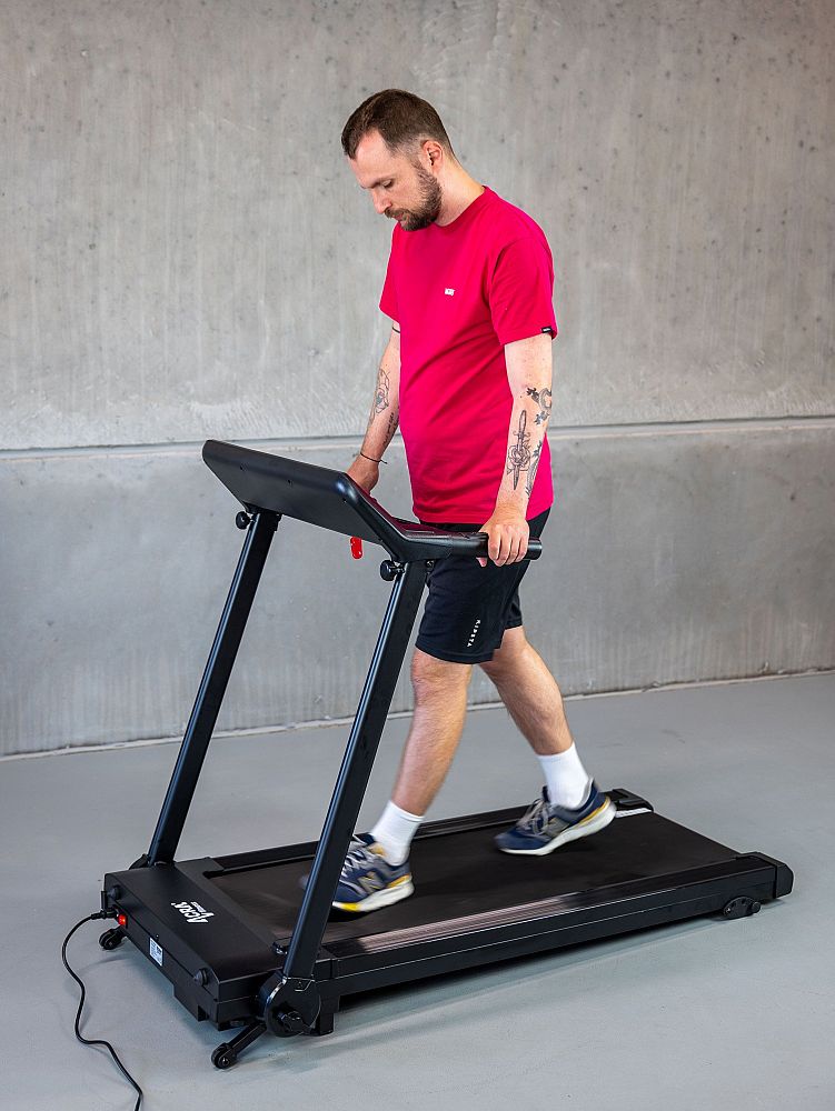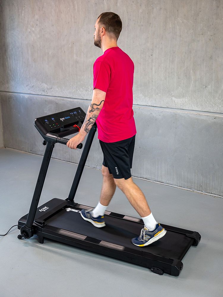 - Šetrný k kloubům: Odpružená běžecká plocha a možnost nastavení nízké rychlosti minimalizují náraz na klouby a jsou ideální pro osoby s problémy s koleny nebo boky.
