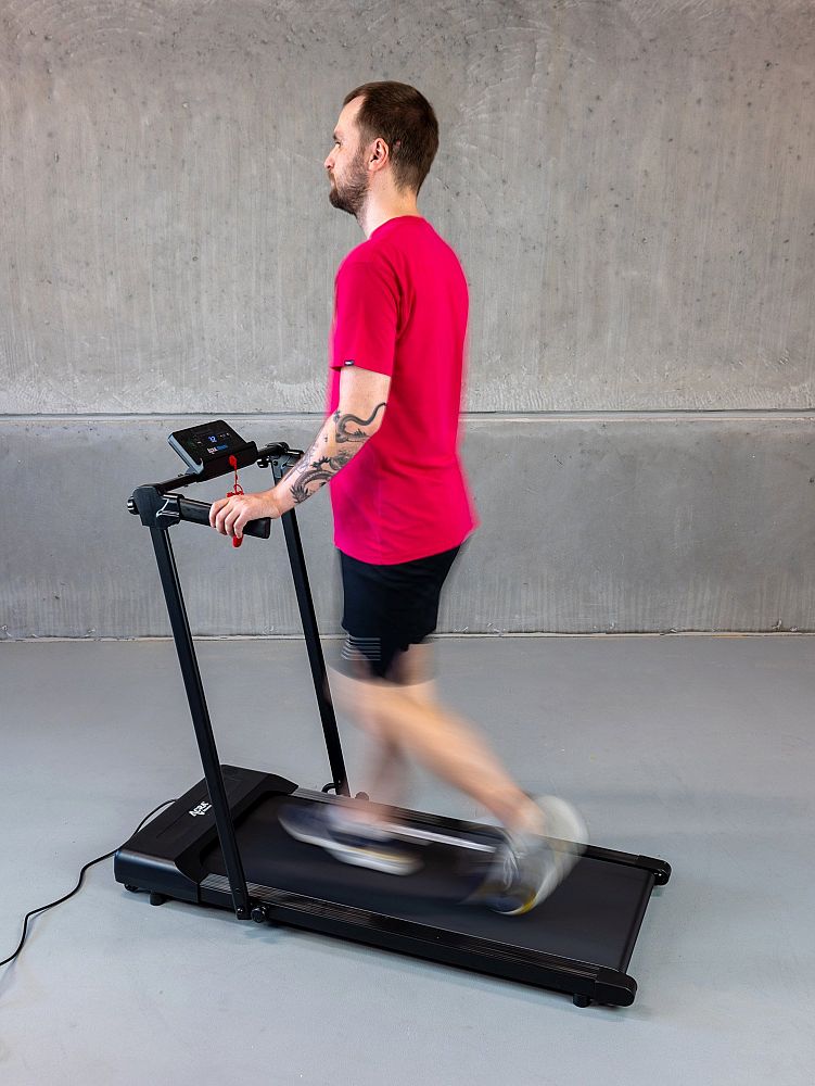 - Šetrný k kloubům: Odpružená běžecká plocha a možnost nastavení nízké rychlosti minimalizují náraz na klouby a jsou ideální pro osoby s problémy s koleny nebo boky.