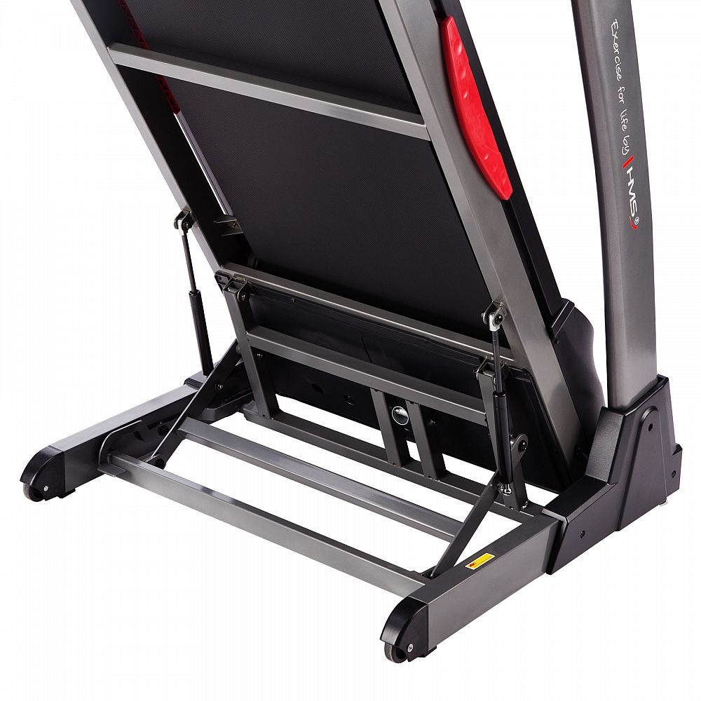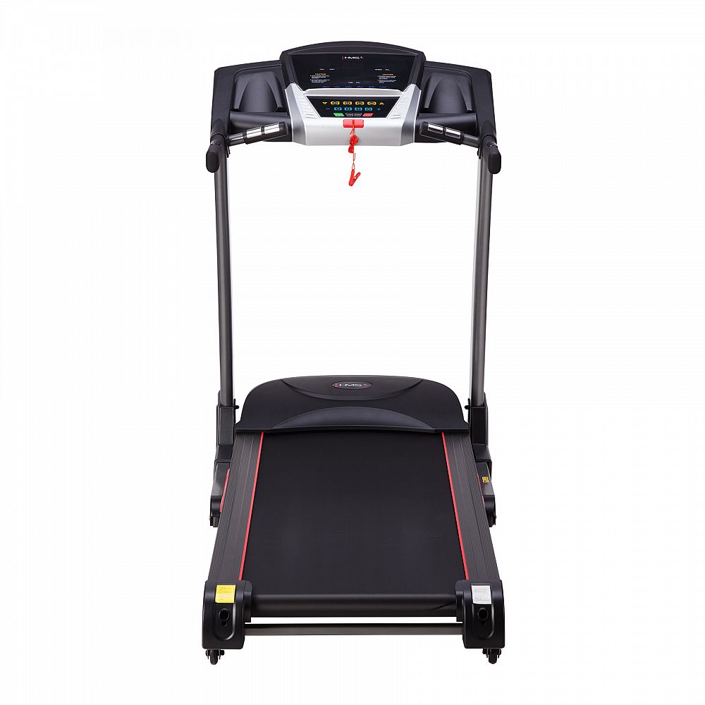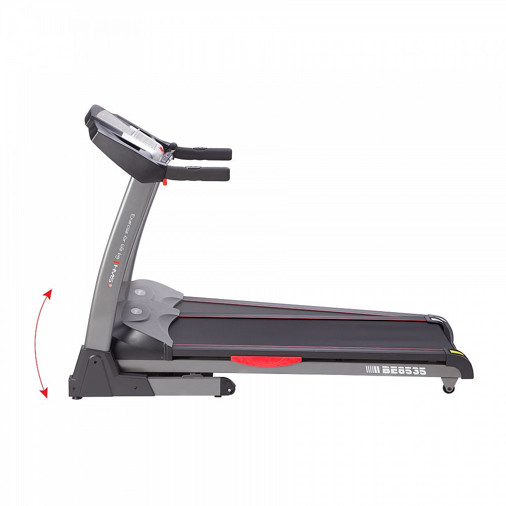 Běžecký pás BE8535 HMS je moderní, robustní běžecký trenažér s možností snadného složení a snímači tepové frekvence v rukojetích. Tichý motor s výkonem 3,5 HP zaručí maximální rychlost 22 km/h. Odpružená běžecká plocha s možností elektronického zdvihu pásu, nabízí dostatek komfortu pro každodenní trénink. Veškeré potřebné informace vám přehledně zobrazí podsvícený LED displej, pod který si díky praktické opěrce můžete umístit například tablet. Výhodou jsou zabudovaná kolečka pro snadný přesun pásu na požadované místo. Díky těmto vlastnostem je běžecký pás BE8535 HMS vhodným doplněním každé domácí posilovny.