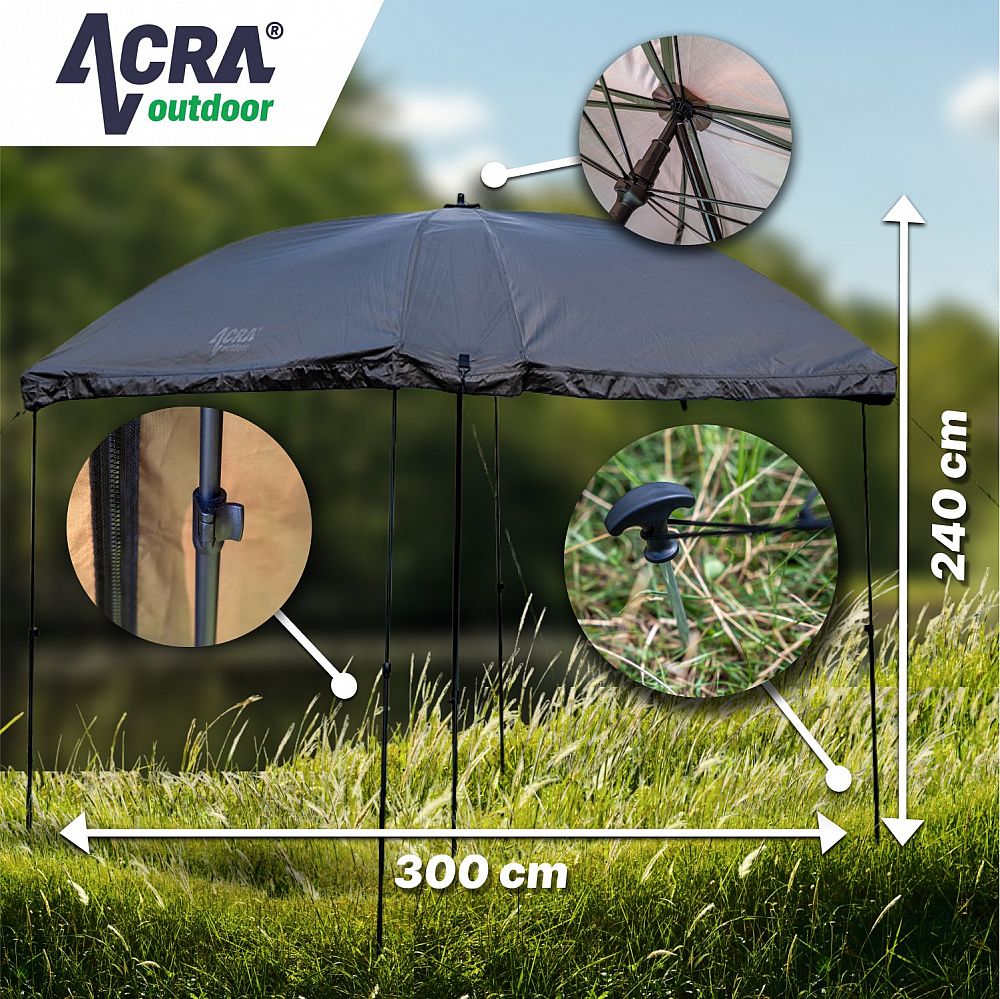 ACRA Outdoor Shelter XXL, deštník 300 cm s bočnicemi a stabilizačními tyčemi