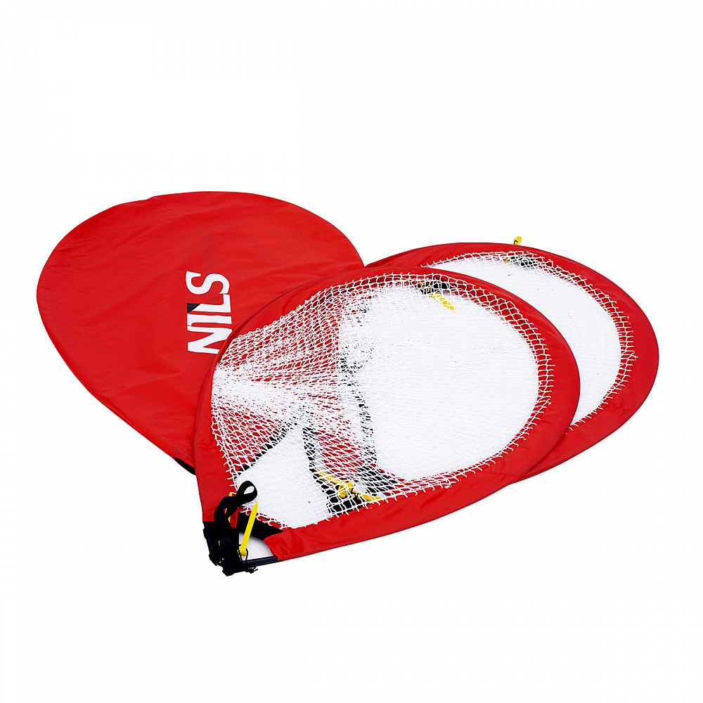 Samorozkládací fotbalové branky NILS s rozměrem 180 x 120 x 120 centimetrŮ. Rozložení těchto branek je velice jednoduché a rychlé. K brankám jsou k dispozici i kolíky pro uchycení na travnatém povrchu.