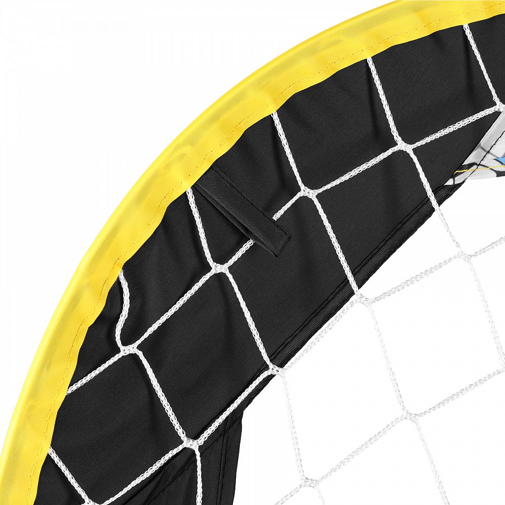 Branka je vyrobena z kvalitních materiálů. Konstrukce stojí na flexibilních, ale zároveň odolných prutech ze sklolaminátu, což zajišťuje trvanlivost a odolnost proti deformacím. Síť z polyesteru garantuje odolnost proti protržení a vlivům počasí. Navíc jsou součástí sady tři kovové kolíky pro pevné upevnění branky k zemi, i při silnějším větru nebo intenzivní hře.