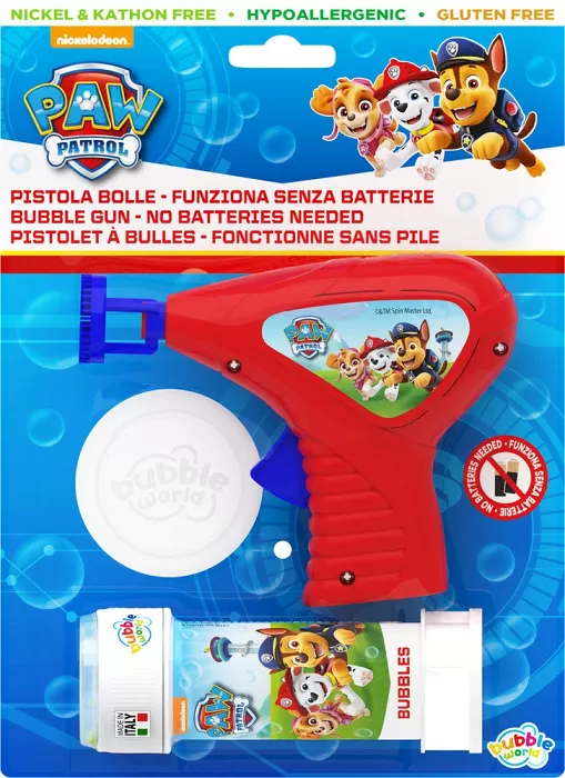 Bublifuková pistole pro malé nadšence bublinkového světa s motivem Tlapková patrola. Barevná pistolka se vám skvěle postará o zábavu během letních dní.
