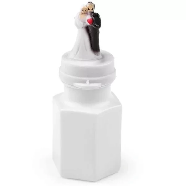 Svatební bublifuk v bílé barvě s postavičkami nevěsty a ženicha skvěle podtrhne svatební zážitek.