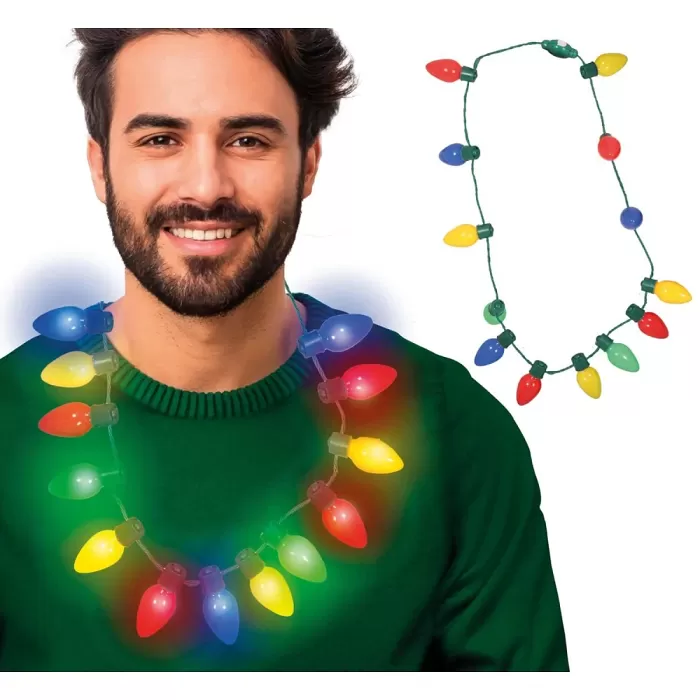 Zazařte na vánoční party s těmito originálními vánočními světýlky na krk! Barevný a veselý design dodá vašemu outfitu hravý i sváteční nádech. Ideální doplněk na vánoční večírky, školní besídky, firemní party nebo do fotokoutku. Stylový náhrdelník, který rozzáří každý úsměv a vnese do vašeho dne radost i vánoční náladu! ✨ Baterie součástí balení Počet světýlek LED: 12 ks Balení: 1 ks