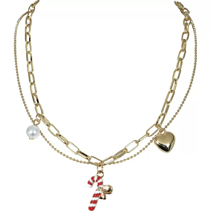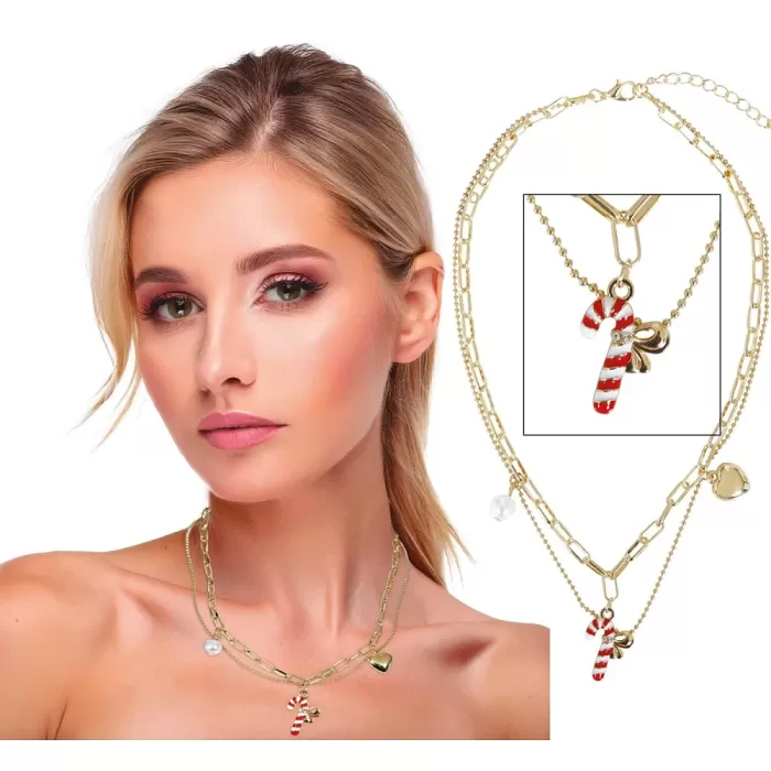 Rozzářete sváteční dny drobným doplňkem, který okamžitě vykouzlí vánoční náladu! Tento elegantní vánoční náhrdelník se zlatým řetízkem je ozdoben vánoční cukrovou hůlkou a dalšími přívěsky. Náhrdelník působí hravě i slavnostně zároveň – dokonale se hodí k vánočnímu outfitu, na školní besídky, rodinné oslavy nebo jen tak pro radost během adventu. Díky nastavitelné délce pohodlně padne na každému a snadno se zapíná. Skvělý dárek pro všechny, kteří milují vánoční detaily. Barevné ozdoby v tradičních tónech červené, bílé a zlaté přinesou kousek kouzla do každého dne a promění náhrdelník v malý sváteční poklad.