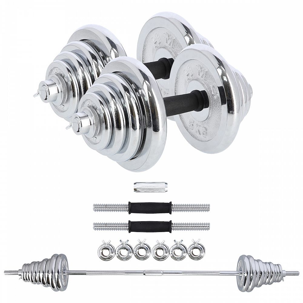 Činky jsou vyrobeny z vysoce kvalitní, chromované oceli, která je zárukou dlouhé životnosti. Kotouče se proti posunutí zajišťují šroubovacími zámky, které jsou dodatečně jištěny šroubem s křídlovou matkou.