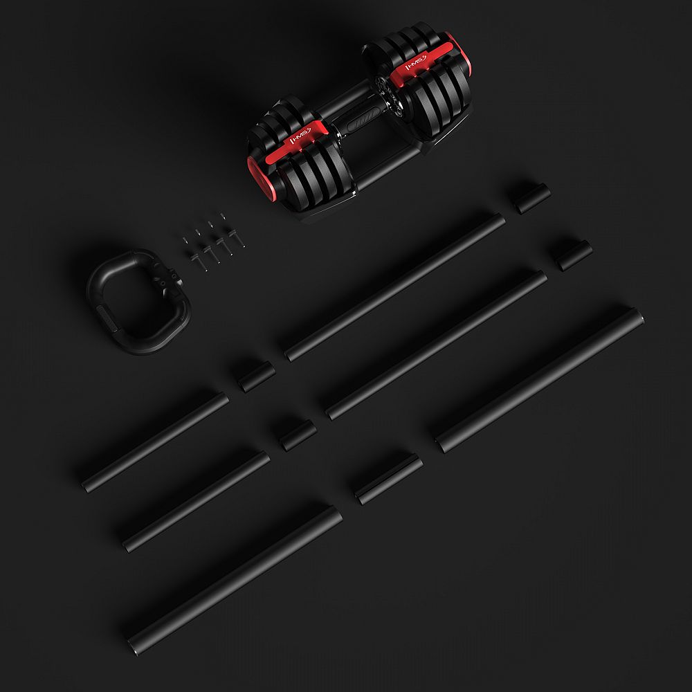 HMS SGR18 PRO SET 3v1 je sada variabilní - nastavitelné činky s možností sestavení jako jednoruční činka, obouruční činka, nebo kettlebell.