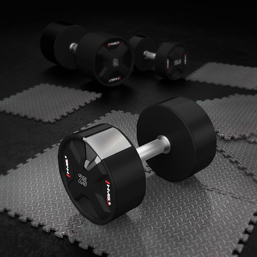 Jednoruční činky HMS HPC jsou vyrobeny z ocelového jádra potaženého litým polyuretanem (CPU). HPC jsou vybavením vytvořeným s ohledem na nejnáročnější uživatele. Výjimečná odolnost, estetické provedení a pokročilé vlastnosti z nich činí ideální volbu pro ty, kteří očekávají spolehlivost během intenzivních tréninků.