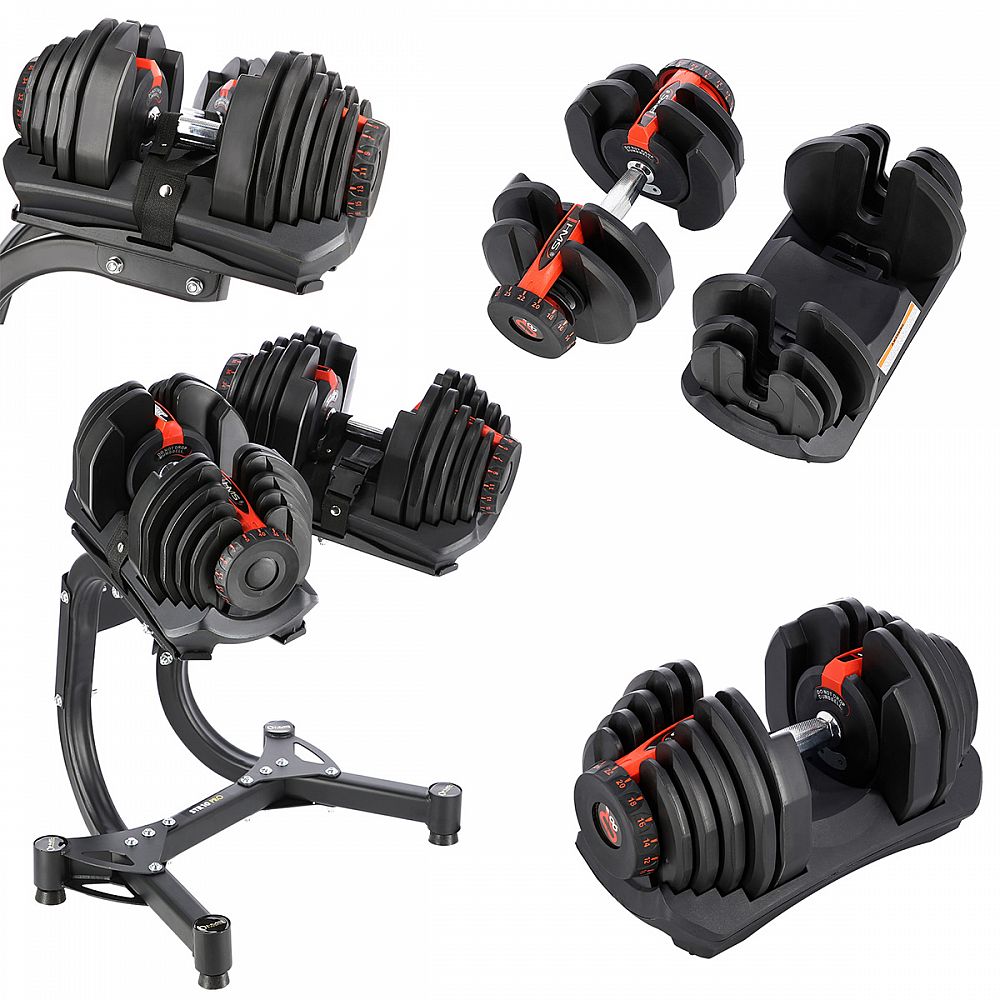 Po vybalení stačí sadu umístit do speciálního stojanu a otočením vnějších voličů nastavit příslušnou zátěž, která je označená v librách (1 lbs = 0,45 kg). Systém zámků spojí s činkou takovou kombinaci závaží, která odpovídají vybrané zátěži a zbytek závaží zůstává ve stojanu. Pokud potřebujete zátěž upravit, pak činku uložíte do stojanu, otočíte voliči a můžete pokračovat v tréninku.