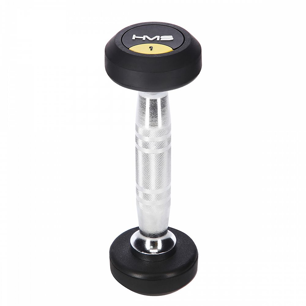 1 kilogramová jednoruční činka HMS HG Pro je určená pro profesionální použití jak doma tak v posilovně. Závaží tvoří litinový odlitek pokrytý silnou vrstvou gumy, která ochrání jak činku, tak podklad před poškozením. Na čelní straně je značka HMS a údaj o hmotnosti v kilogramech. Rukojeť je vyrobena z chromované oceli, pro pohodlný úchop má soudkovitý tvar s vroubkováním. povrchem.