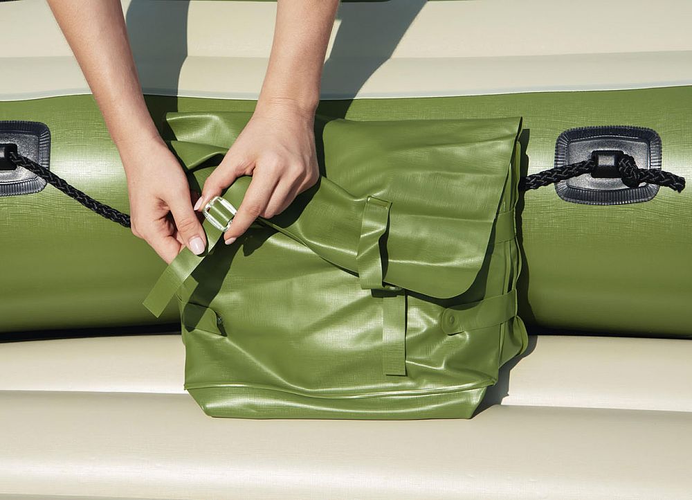 - Uzavírací odkládací schránka upevněná na boku člunu