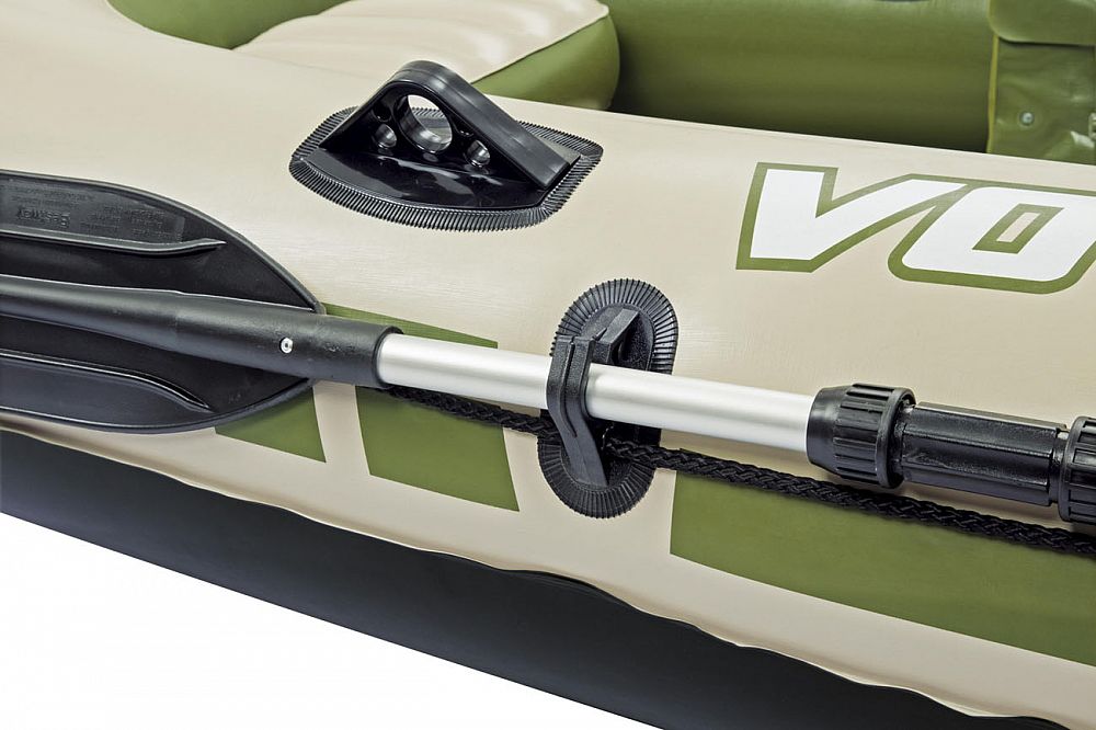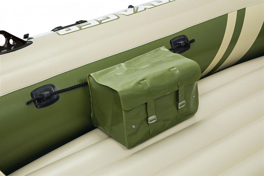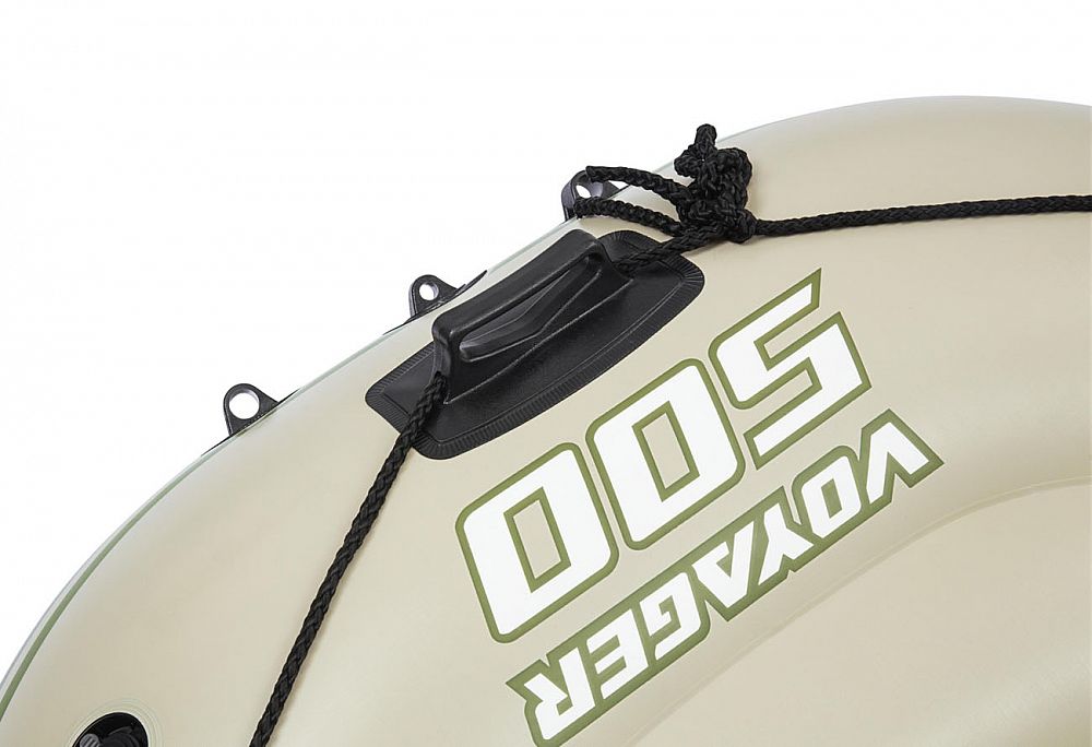 Člun VOYAGER 500. Kvalitní člun s kapacitou 3 dospělých osob, který má tři nafukovaci komory, zvyšující bezpečí na delších plavbách v případě úniku vzduchu z jedné z komor. Člun je vhodný i pro rybáře díky připevněné odkládací schránce a držákům prutů.