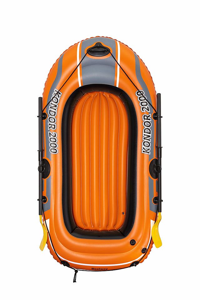 Nafukovací dvoumístný člun KONDOR 2000 . Rozměry člunu jsou 188 x 98 cm v nafouknutém stavu – jinak je rozměr pro vyfouknutý člun 197 x 115 cm (většinou se uvádí tento údaj). Rekreační člun tříkomorový je vyrobený podle nových bezpečnostních norem EU. Člun je doporučený pro jednu dospělou osobu a 1 dítě. Vesla a nafukovadlo jsou součástí balení. Nosnost 120 kg.