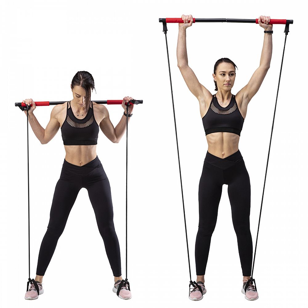 Jako příklad uvadíme cvik, kdy se na tyč postavíte a expadnéry přitahujete směrem k tělu. Případně si rukojeti expandérů nasadíme na chodidal a přitahujeme tyč.