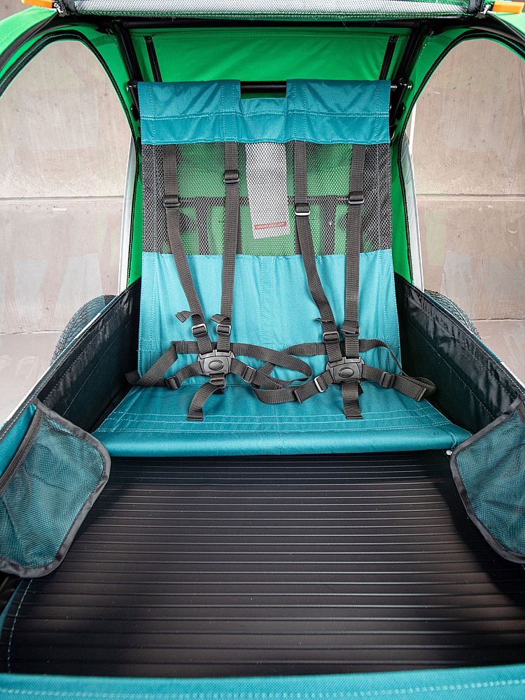 Popis: Dětský kombinovaný vozík Bellelli Trailblazer za kolo + kočárek pro 2 děti zelený