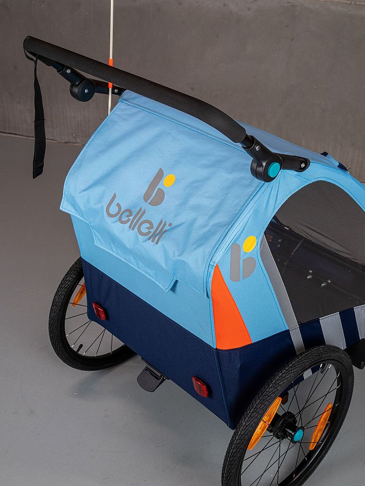 Popis: Dětský kombinovaný vozík Bellelli za kolo + kočárek pro 2 děti modrý