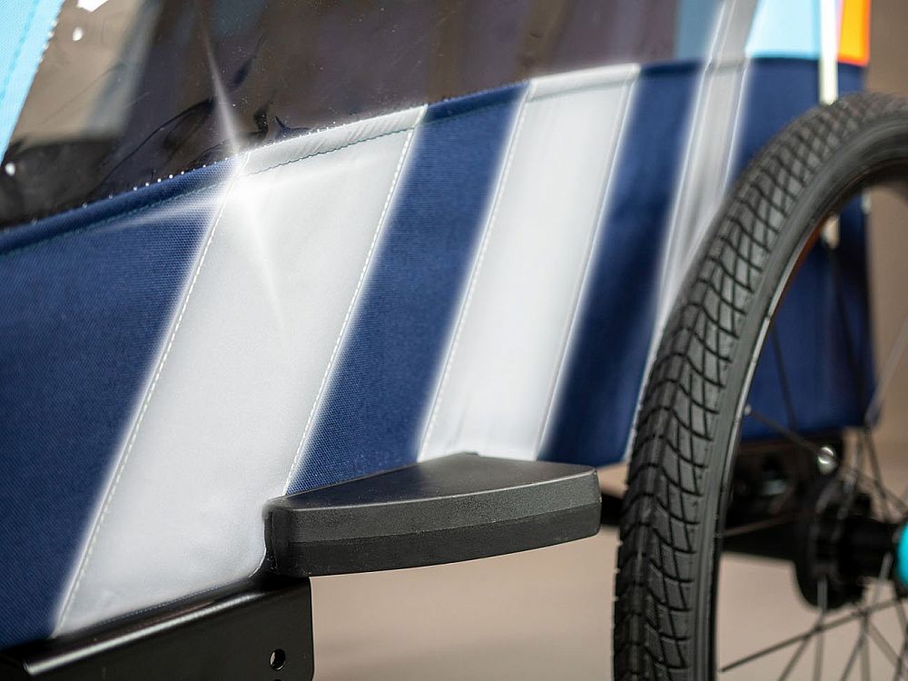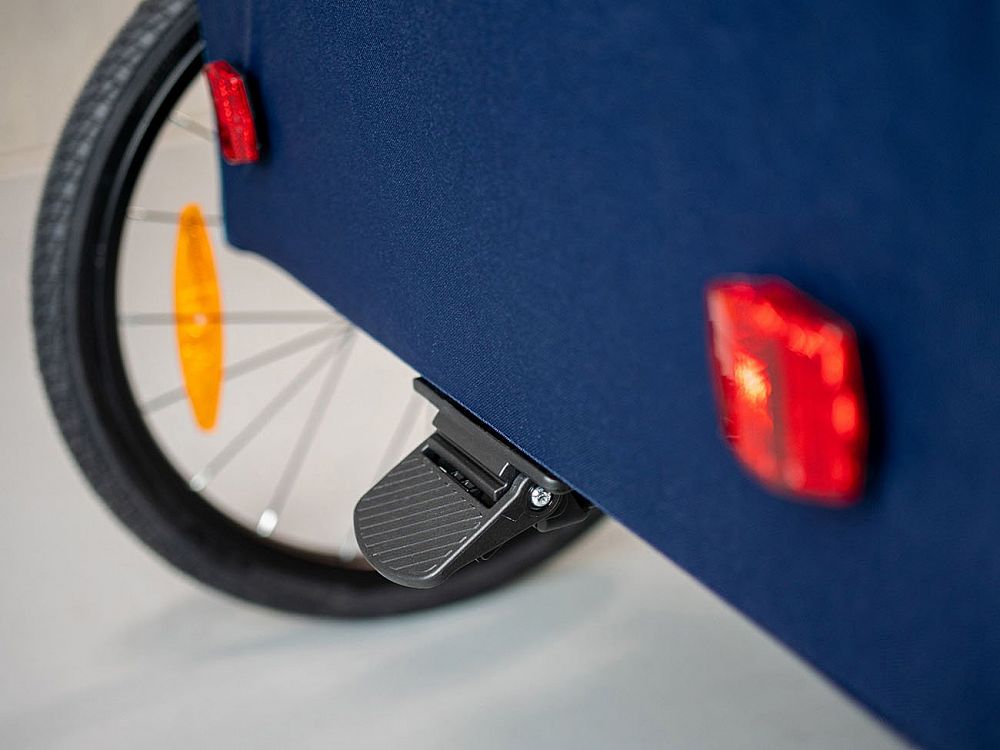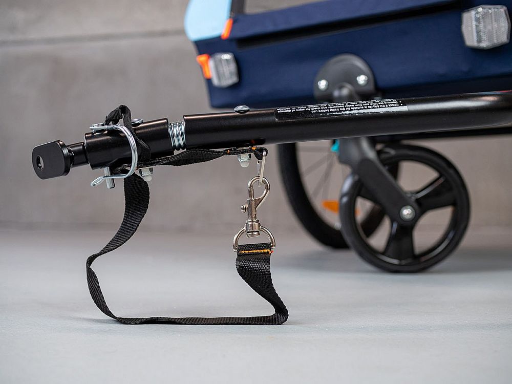 - snadné připevnění k zadní ose jizdního kola, zajištění upínacím popruhem s karabinou proti odpojení vozíku za jízdy