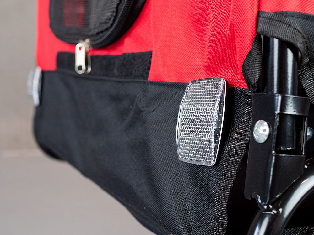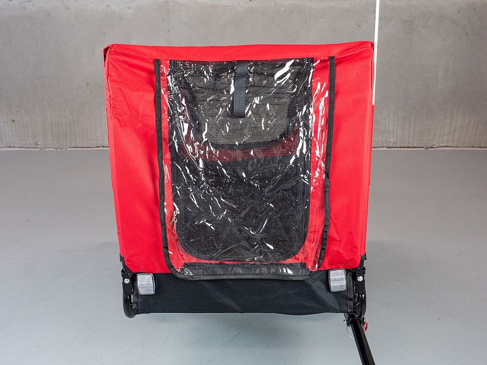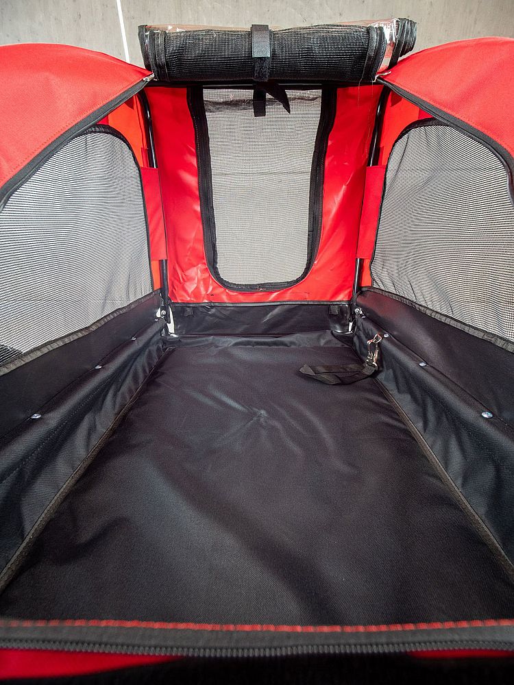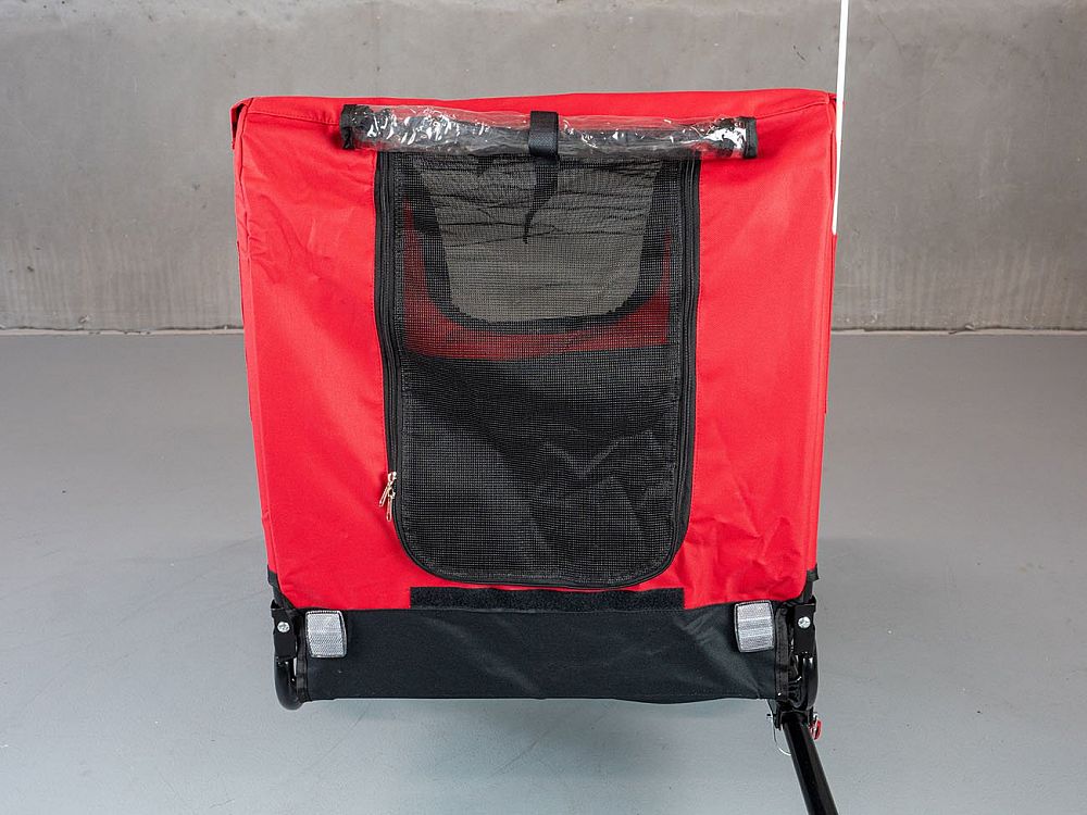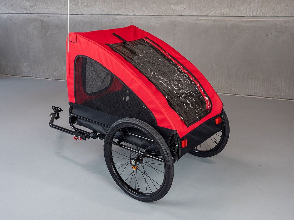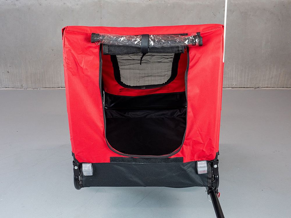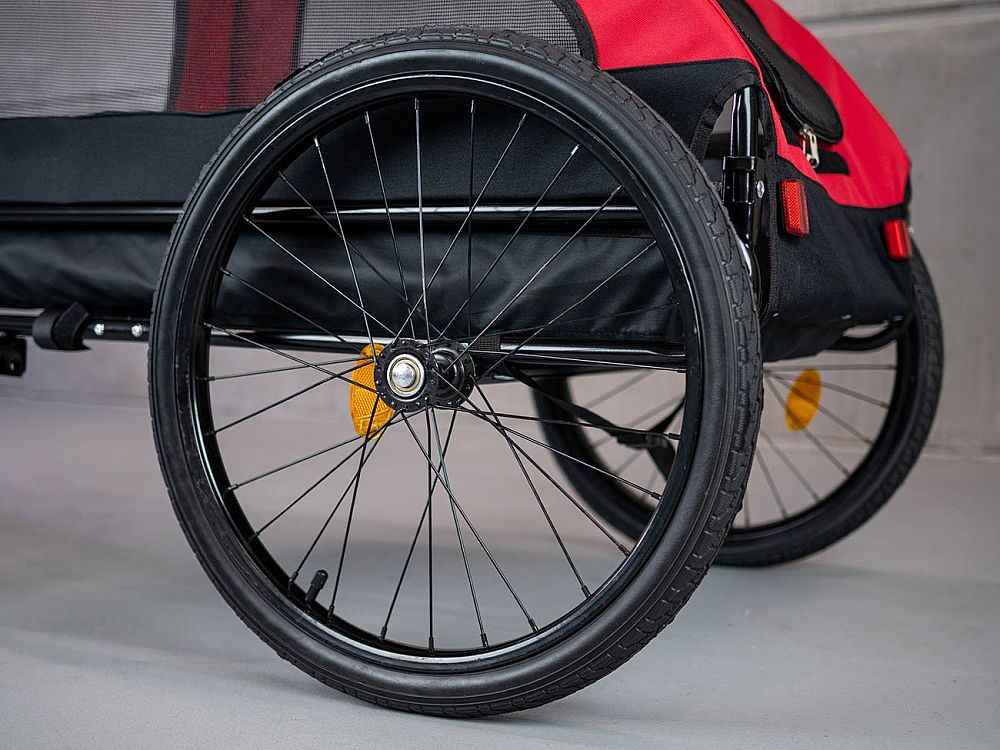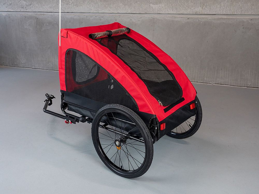 Vozík je vybavený dvěma stabilními 20″ koly. Pevná a lehké konstrukce dělá z vozíku atraktivní prostředek umožňující brát s sebou na výlety i domácího mazlíčka. Doporučený hmotnostní limit je 40 kg. Vnější rozměry vozíku jsou: délka – 79,5 cm (+ cca 70 cm tažná oj) x šířka – 60,5 cm x výška – 68 cm. , hmotnost je 15 kg. Vniřní prostor má rozměry 74,7 x 52,7 x 60 cm. Vozík je vyrobený v barvě červenočerné .