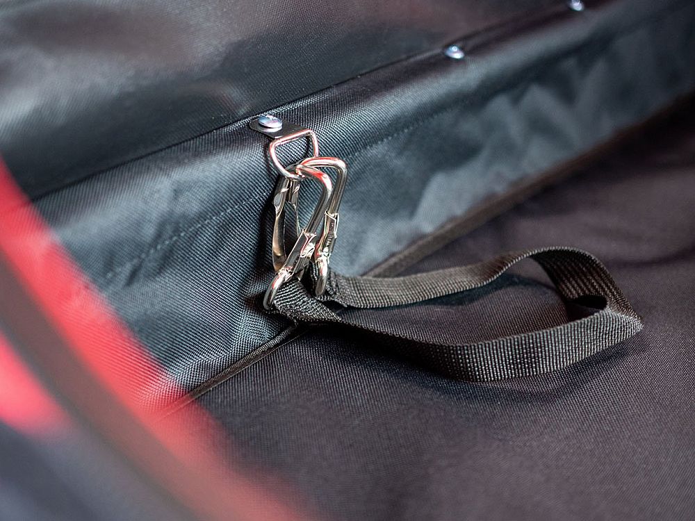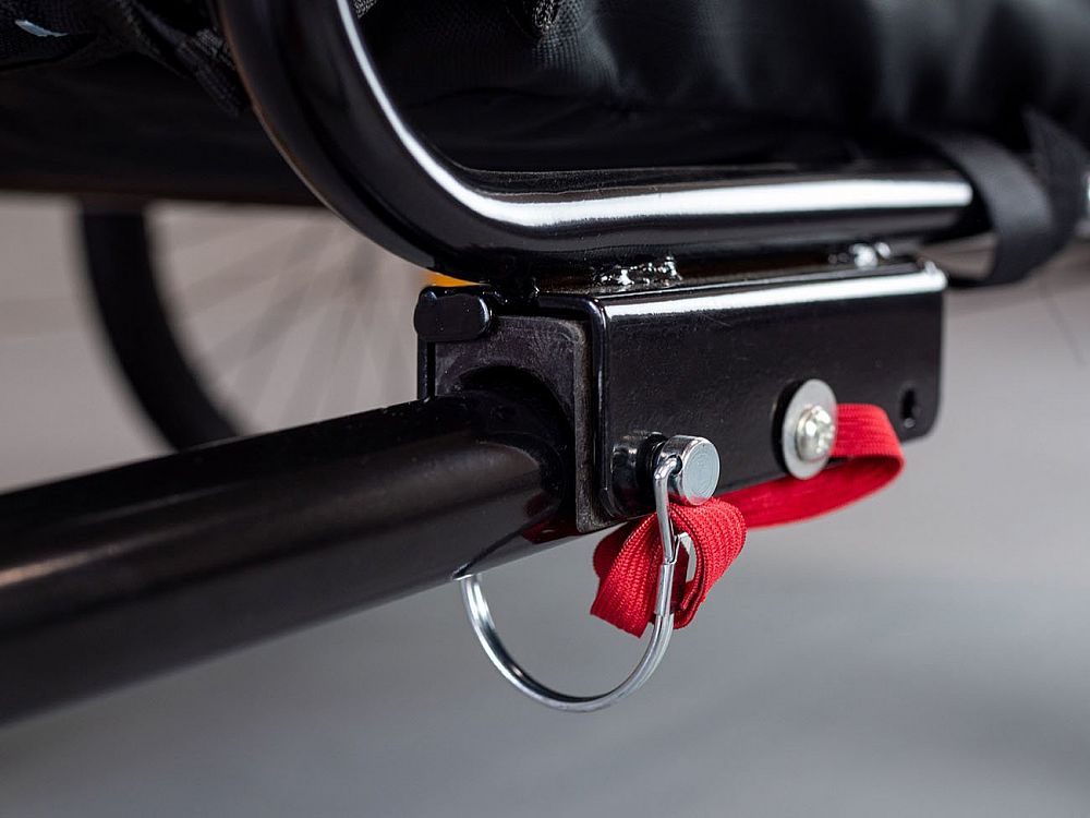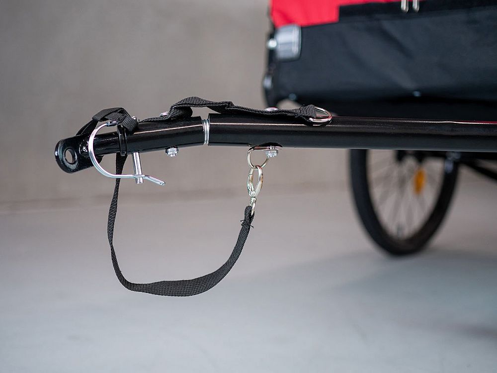 - snadné připevnění k zadní ose jizdního kola, zajištění upínacím popruhem s karabinou proti odpojení vozíku za jízdy