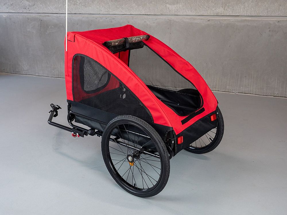 Základem je dvoukolový vozík s tažnou ojí, která umožňuje snadné uchycení za zadní kolo. Jako pojistka proti uvolnění vozíku za jízdy je upínací popruh s karabinou, kterou se vozík upne na rám jízdního kola. Vozík je vyrobený z pevného materiálu (PES 600D oxford) a na třech stranách – čelní + 2 boční a ve střeše vozíku je ochranná síťovina proti hmyzu. Střecha a čelní stěna mají dále PVC rolovací folii na překrytí síťoviny při dešti nebo při jízdě za mokra. Přístup do vozíku je zepředu i ze zadu s otevíráním na zipy, což zajišťuje pohodlné naůložení zvířete. Vozík je dále vybavený reflexními pruhy po straných, odrazkami na přední i zadní části.