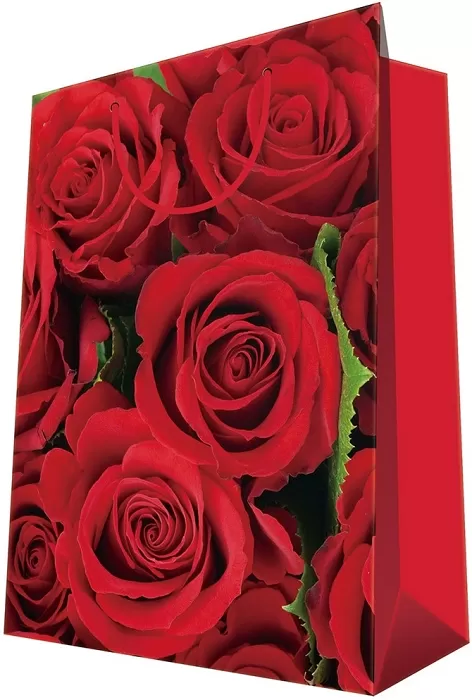 Kvalitní, papírová, dárková taška s motivem růží v červené barvě.