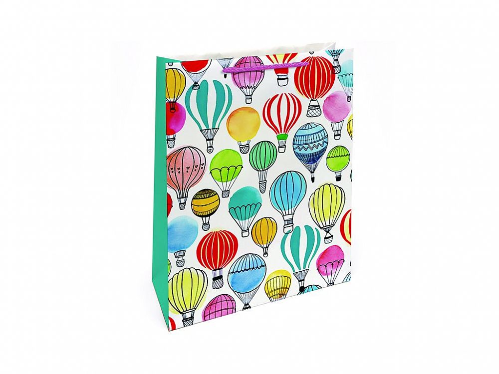Velký dárek si žádá velkou tašku! Není problém. Máme tady pro Vás tuto neutrální, ale přesto krásnou s horkovzdušnými balóny.