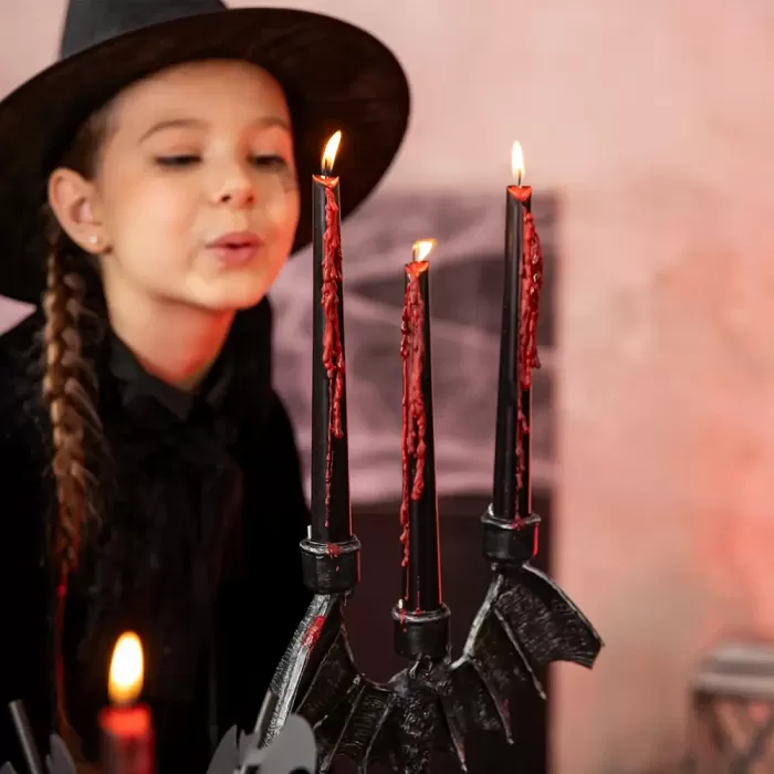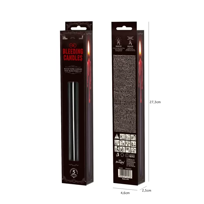Černé krvavé svíčky vytvoří okamžitě děsivou a tajemnou atmosféru. Po zapálení ze svíčky stéká červený vosk připomínající krev, čímž vzniká realistický hororový efekt, který upoutá všechny pohledy. Perfektně se hodí na halloweenské párty, hororové večírky, tajemné oslavy nebo jako doplněk k tematickým dekoracím. Elegantní černá barva dodává svíčkám stylový vzhled, takže se skvěle kombinují i s tmavě laděnou výzdobou. Umístěte je na stůl, krbovou římsu nebo do svícnu a vytvořte scénu, která připomene napětí ze strašidelného filmu. Tyto svíčky nejsou jen obyčejným doplňkem – stanou se středobodem vaší výzdoby a zajistí nezapomenutelný vizuální efekt, který hosté ocení. Délka: 25 cmBalení: 2 ksDélka hoření: ± 5 hodin
