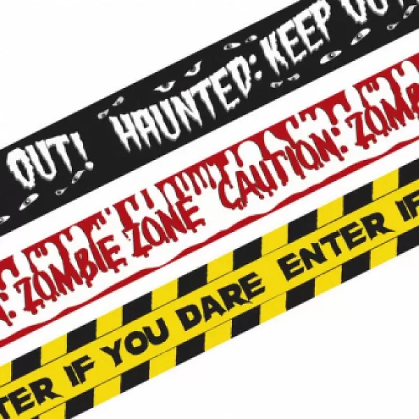 Halloweenská dekorace - bezpečnostní páska. Délka: 914 cm Sada obsahuje: 3 druhy pásky - ZOMBIE ZONE, HAUNTED: KEEP OUT, ENTER IF YOU DARE.