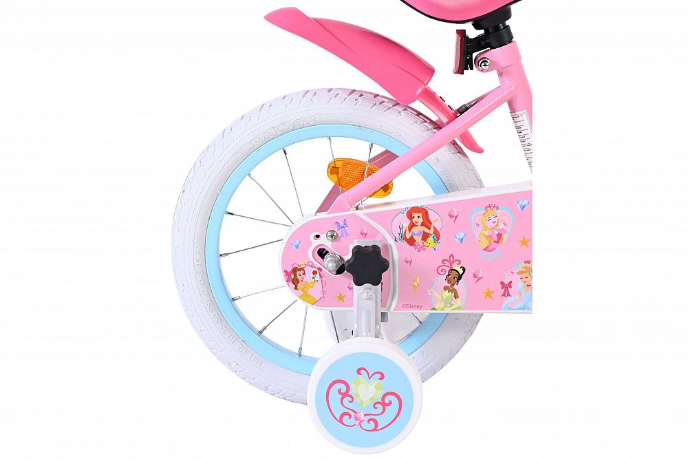 Kolo Volare Princess 14″ pomáhá dětem osvojit si základy jízdy snadno a bezpečně. Stabilizační kolečka poskytují oporu při rozjezdech i zastavení a dodávají dítěti potřebnou jistotu. Jakmile dítě získá rovnováhu, lze kolečka jednoduše demontovat a pokračovat v jízdě bez podpory.